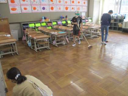 耳鼻科検診に行っていたクラスもあったので6年生だけでお掃除。