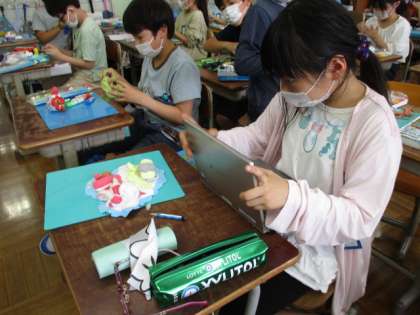 図画工作「元気のおまもり」では,元気をもらえるおまもりを作りました。