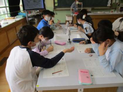 理科の学習では「ものの燃え方」のまとめをしました。みんなで協力してプリントを解いていました。