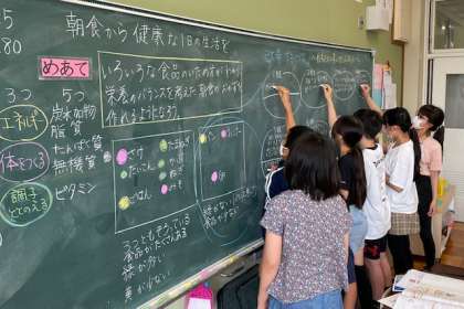 家庭科では,栄養のバランスを考えた朝食を考えました。