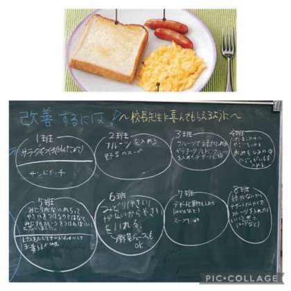 そこで,ただ考えるのではなく,「校長先生が食べられるなら,どのような1品を加えたらよいかな?」と投げかけると,一気にやる気スイッチが入り,話し合いが活発になりました。