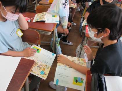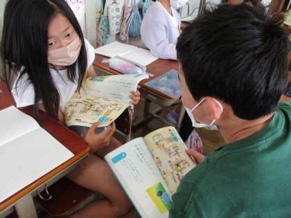 図書室の使い方を説明し合いました