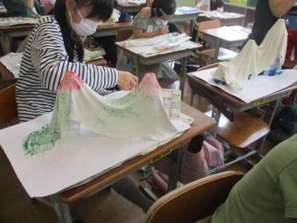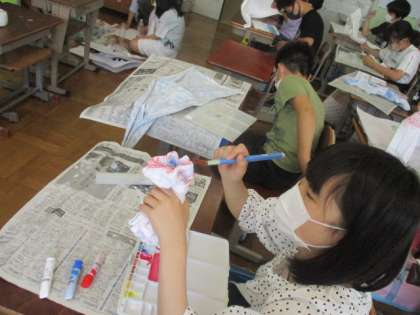タオルがカチカチに固まっていました!自分のイメージ通りに彩を加えていきます。