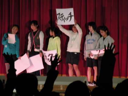 幕間の時間を利用して,集会委員会の人たちが考えたクイズやゲームなどをしました。