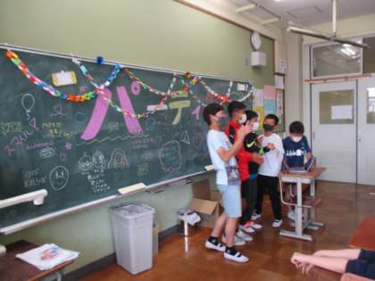 お楽しみ会をしました。お楽しみ会の名前もみんなで考え,プログラムやかざり,係からの発表など,全て自分たちで行いました。