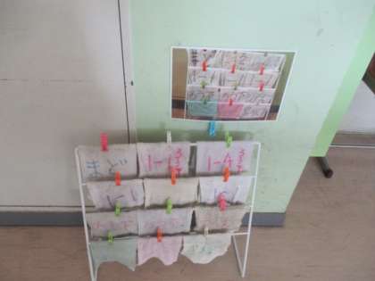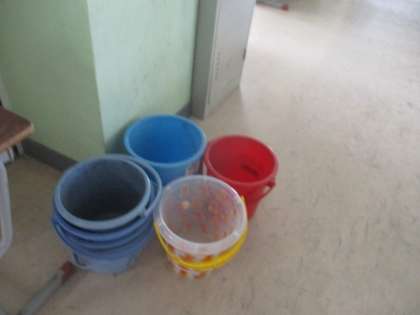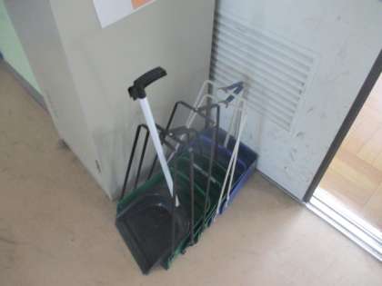 バケツやぞうきん,ちりとりなどがキレイに並べて置かれています。心が綺麗な証拠ですね。