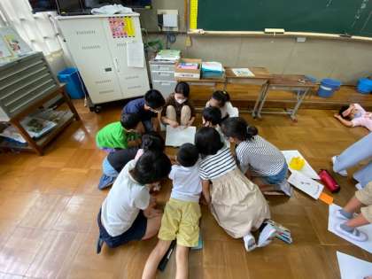 今年度は,4つのグループが教室,運動場・中庭・憩いの広場,体育館・多目的教室に分かれて行います。