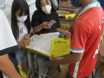 食事の席やバスの座席などを決めています。楽しそうです♪