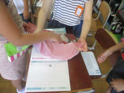 ふろしきについて,実際にふろしきに触れることを通して,学習しました。