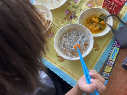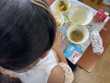 七夕にちなんだ給食のメニューです。星の形をしたにんじんが入っており,子どもたちは「入っているかな?」とわくわくドキドキしながら食べていました。行事にちなんだメニューや楽しく食べることは食事にとってとても大切だなと感じます。
