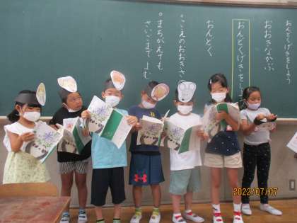 おおきなかぶの音読劇をしました。「うんとこしょ どっこいしょ」のところはどのグループも力強く,気持ちがとってもこもっていました!