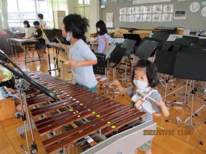 3年生の児童が、交流学級の音楽科の学習に参加し、