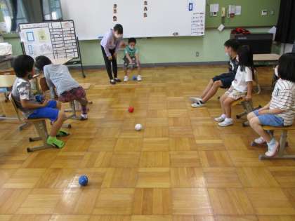 大人気のみんな遊び「ボッチャ」