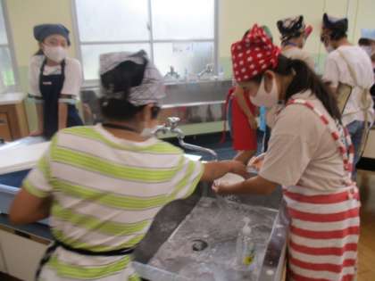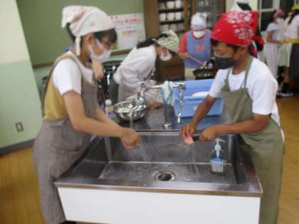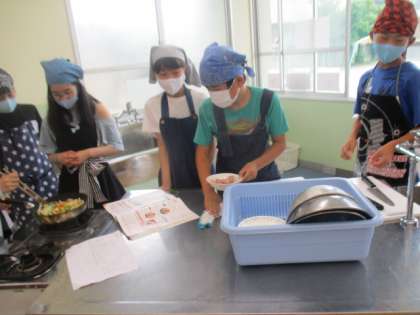 切ったり炒めたりしている横では,洗い物や片付けをしています。