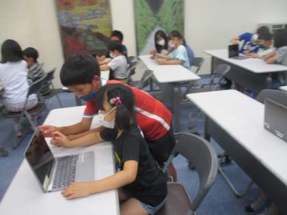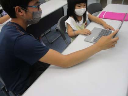 1年生にとっては初めてのタブレット。まずは電源を入れるところから。