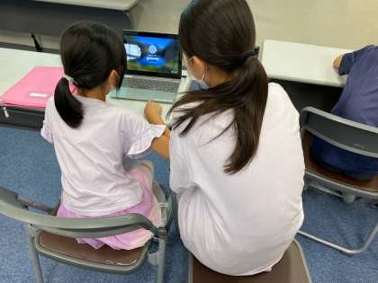 1年生とコミュニケーションをとって,少しずつお話ができるようになってきました。それからタブレットの操作をいっしょにやりました。