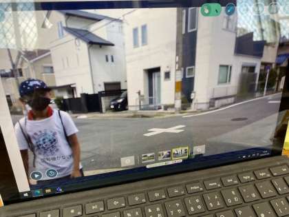 タブレットを持ち,なかよしグループのメンバーといっしょにハイキングをする際,安心安全にいけるか不安なところ,危険なところをタブレットで撮影してきました。