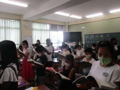 新しく習う漢字を正しい書き順を確認し,練習しています。音読「からたちの花」も,どのように読むとよいかを考えながら,音読しています。