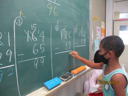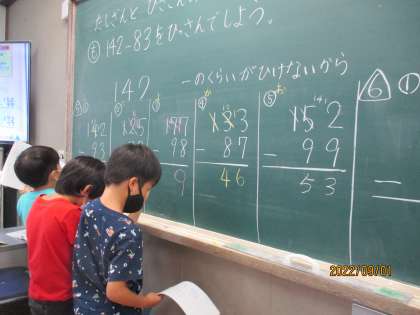 今日は,くり下がりが2回ある引き算の筆算をがんばりました。