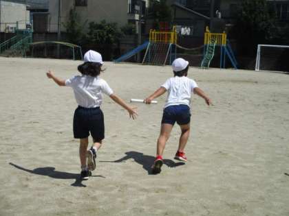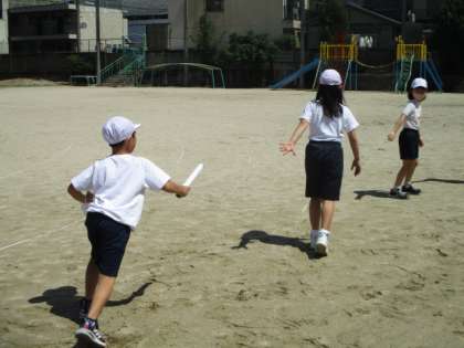 はじめて「リード」をしながらバトンをもらう学習をしました。