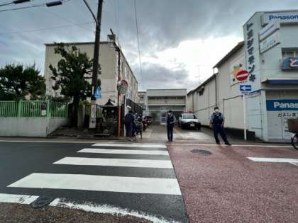 今日は深草交番のおまわりさんが交番前に3人も立ってくださいました。正門の北にある横断歩道にもおまわりさんが一人、京阪の踏切のところにも一人おまわりさんが立ってくださいました。おまわりさんの姿が見えたからなのか、横断歩道の手前で止まってくれる車もバイクも自転車が多かったように感じます。