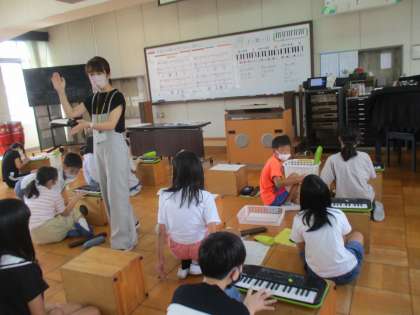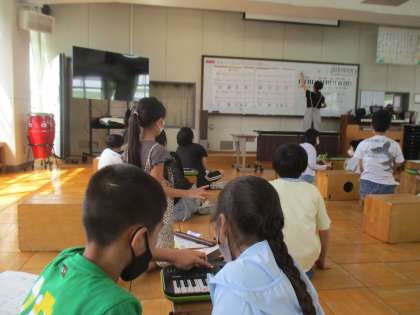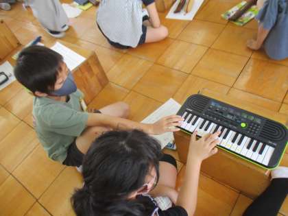 「ドミソ」,「シレソ」など,先生の声に合わせて交代しながら弾きました!