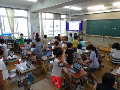 各学年の学習の様子を見ていると、机に向かって教科書を読んだり、ノートに字を書いたりするだけでなく、いろいろな学習があることがわかります。どの学年でも、みんな一生懸命に学習しています。