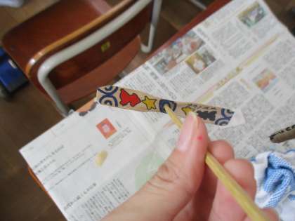 竹とんぼに色づけをし,思い思いの絵を描いていました。