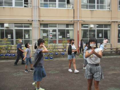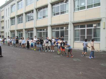 最後に一列に並び,みんなでいっせいに飛ばしました!大成功!!