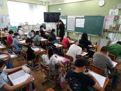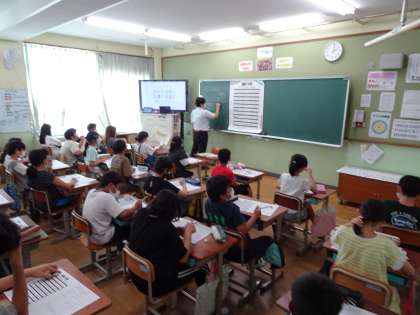 5年生の参観での学習は、学活「ハングルに親しもう」でした。一生懸命に、ハングル語を書いたり読んだりしていました。5年生のみんな、ハングル語が少しわかりましたか?