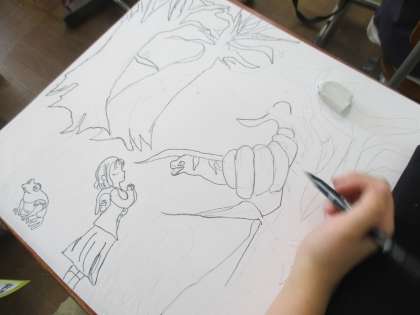 下書きをもとに,画用紙に描いていきました。