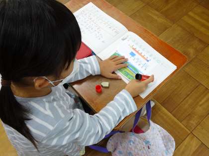 2時間目、1年生が算数の「大きさくらべ」の学習をしていました。みんな一生懸命に学習しています。授業の様子を見ていると、しっかりノートを書いたり、上手にのり付けしたりしています。いつの間にか、1年生が成長してしっかりしていました。少しおどろくと同時に、うれしい気持ちになりました。