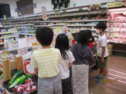 社会科「商店のはたらき」の学習で,スーパーマーケットのフレスコさんに見学に行きました。たくさんのお客さんにきてもらうためにしている工夫をたくさん見つけていました。