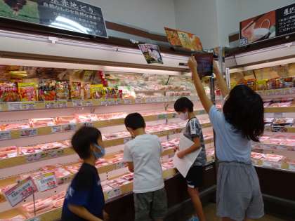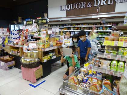 お店の中までついていくと・・・お店の中の様子をタブレットを使って写真を撮っています。お店の中の棚や冷蔵ケース、商品など写真をたくさん撮っているよ。