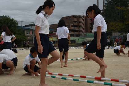 休み時間や放課後も一生懸命に練習したバンブーダンス,自信をもって踊っていました。