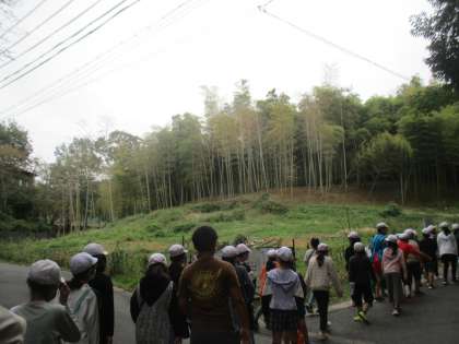 歩いていくと・・・その先にはたくさんの竹林!子どもたちは興味津々!