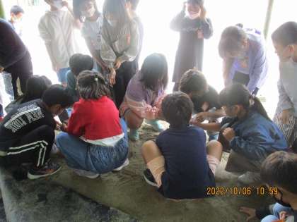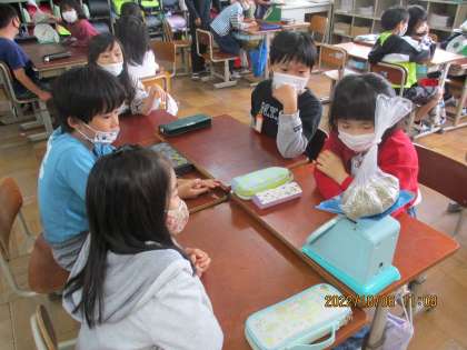 算数の学習で,1キロを予想して土を詰めました。最初に1キロを持ちどのくらいの重さなのか確かめてから土を詰めにいきましたが,みんなとても少なかったです!グループで協力しながら重さを予想していました。