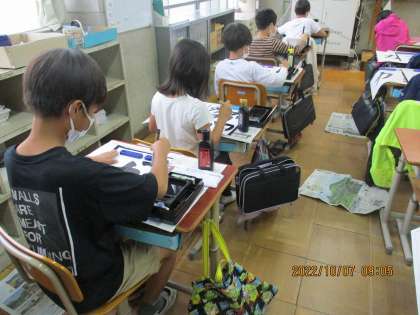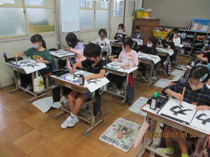 とても集中しながら,落ち着いて真剣に書いていました。とても上手に書けました。何事にも集中して取り組むことが大切ですね。