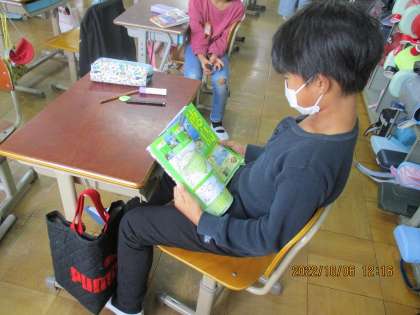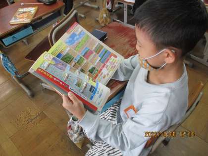 月に1度,コミュニティ図書館で好きな本を借りています。今月は,「るるぶ」という旅行雑誌を借りた男の子がいました。本ではないんだけどな…他に誰が読むのだろうか…と思っていたのですが,子どもたちには大人気で,地名やその県の場所の位置など調べていました。有名な食べ物を知り,社会の学習でとても生かされていました。意欲って大事だなと改めて感じました。「おいしそう…」「行きたいな…」という声がチラホラ聞こえてきます。先生も行きたいな…といつも思っています。