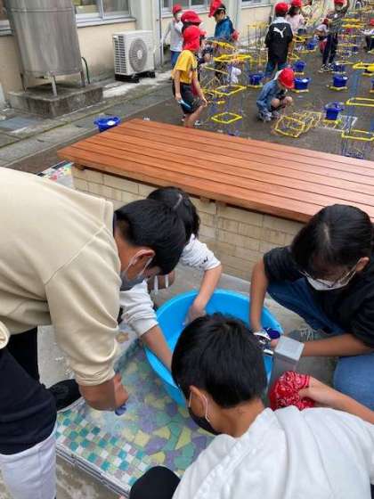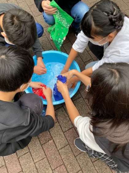 おうちからバンダナを持ってきて,手洗いをしました。