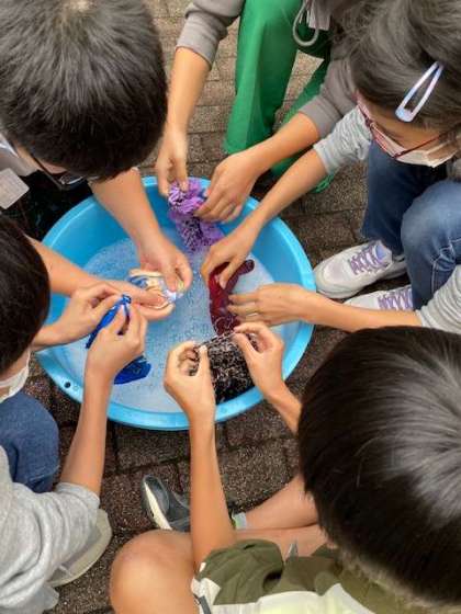 もみ洗い,つまみ洗いで汚れを落とし,すすいで洗剤を洗い流していきます。
