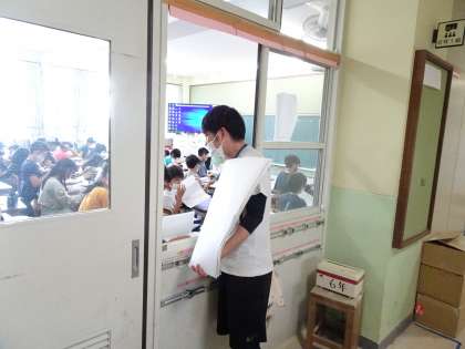 本館3階の6年生のフロアを歩いていると・・・あっ!またまたU田先生が!!なにをしているのかな??