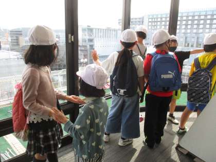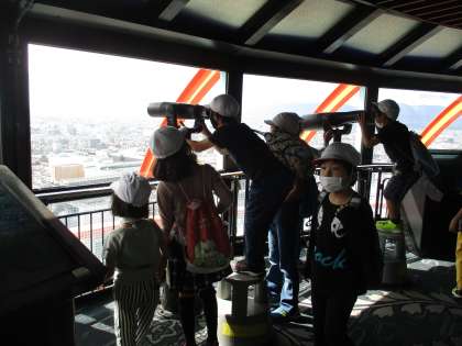 交流学級のお友だちと一緒に電車に乗って京都タワーに行きました。よく晴れていて展望台から京都市の景色がよく見えました。望遠鏡はお友だちと順番に使いました。とても楽しい時間でした★