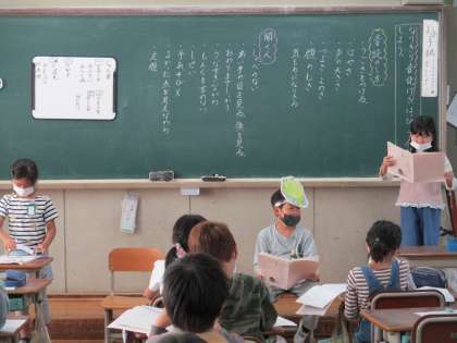 音読劇の練習に取り組み,それぞれ役になりきって発表しました。みんなの前で緊張しつつも,動作をつけたり読み方に変化をつけたりしながら音読しています。