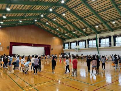 明日は、いよいよ花背山の家での宿泊学習1日目です。5年生のみんなが体育館に集まっています。