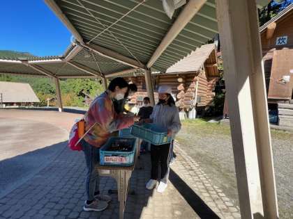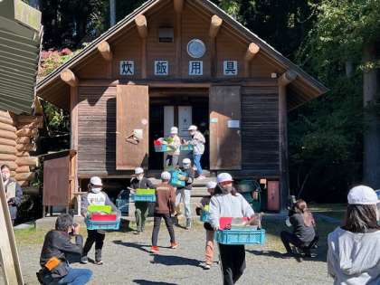 説明をしっかり聞いたら、グループごとに準備物を取りに行って、野外炊飯場に移動します。いよいよスタートです。