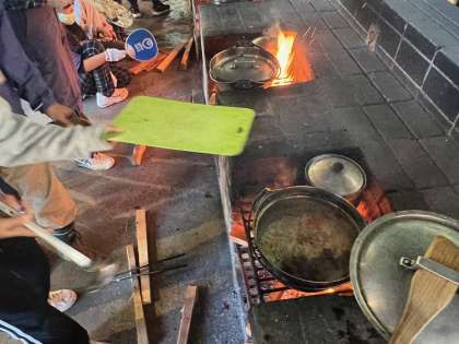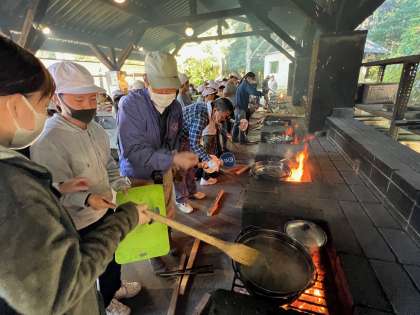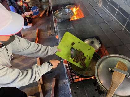 5年 花背山の家(2日目)野外炊事6 “ルーを入れます”