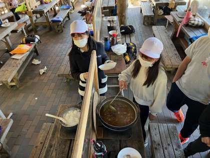 班のみんなで力を合わせたおかげで、ごはんもカレーも上手にできました。どの班もおいしそうなカレーライスの完成です。