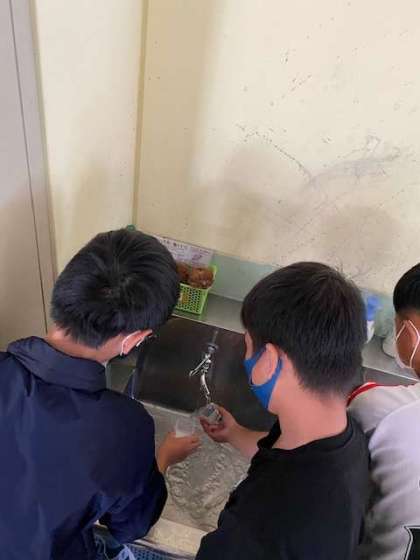 水で洗って重ねることを伝えると,早く食べ終えた児童が,自分から空き容器を回収して洗っていました。