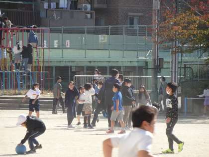 中間休みには、運動場でいっしょにおにごっこや凍りおになどをして遊んでくれましたよ。